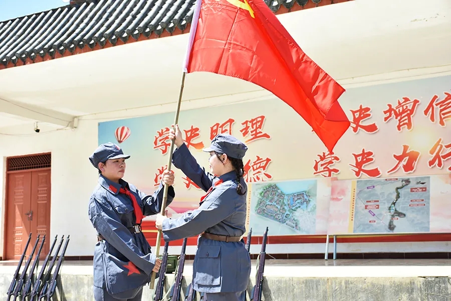 當(dāng)天,參加活動(dòng)黨員干部懷揣著敬慕與感恩之心,穿上紅軍服戴上紅軍帽,模擬紅八軍建制,編隊(duì)整訓(xùn),沿著革命先輩的足跡,徒步重走一次紅軍路,舉行簡(jiǎn)單的授旗儀式后,學(xué)員們高舉旗幟,從水隴徒步至甫茶,追憶紅軍革命精神,傳承紅色精神!
