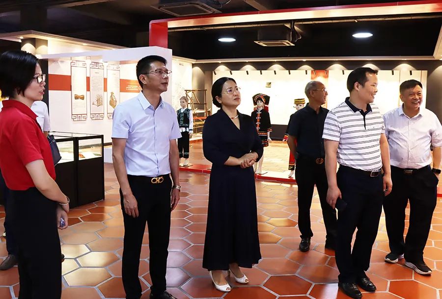 調(diào)研組參觀了百裕校服文化館,在參觀過程中,聽取了百裕世紀總經(jīng)理曾晏來關于文化館的設計理念及校服生產(chǎn)的情況匯報,詳細了解我公司在少數(shù)民族地區(qū)服裝設計理念,企業(yè)在生產(chǎn)經(jīng)營過程中,牢牢把握鑄牢中華民族共同體意識工作主線,注重企業(yè)文化建設各方面的活動及舉措。