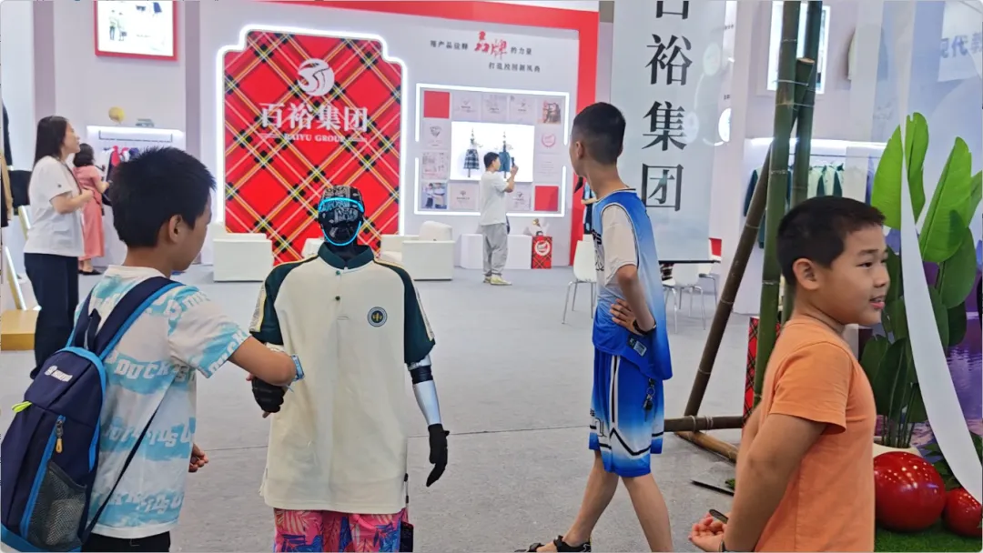 展會期間,還有智能機器人身著百裕集團校服,在展館內(nèi)巡游并與觀眾互動。這一創(chuàng)新場景,成為了全場矚目的焦點。當傳統(tǒng)校服文化與前沿AI機器人技術(shù)相遇,碰撞出的不僅是視覺上的新奇體驗,更是對“科技賦能教育,裝備服務(wù)未來”理念的具象化表達。