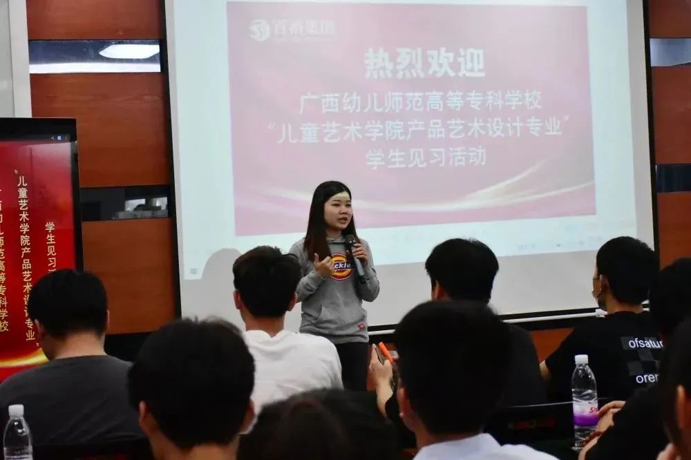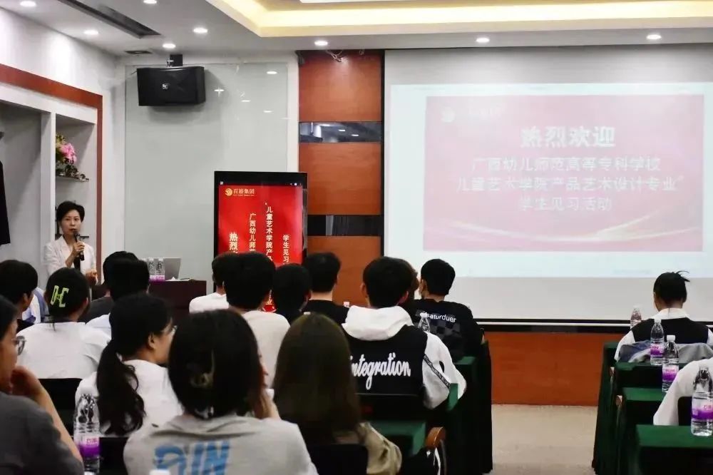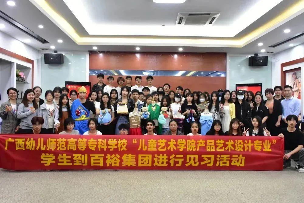 3月21日,廣西幼兒師范高等??茖W(xué)?!皟和囆g(shù)學(xué)院產(chǎn)品藝術(shù)設(shè)計(jì)專業(yè)” 2022級(jí)59名學(xué)生,在老師們的帶領(lǐng)下,來(lái)到百裕集團(tuán)南寧營(yíng)銷中心開展見習(xí)活動(dòng)。
