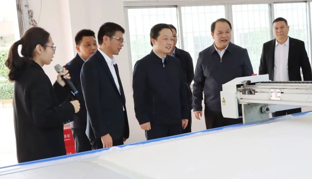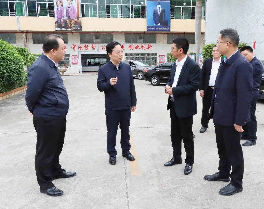 趙書記走進公司校服展廳、車間察看公司產品和生產線,邊走邊看,就產品研發(fā)、銷售推廣等與公司總經理曾晏來深入交流。他希望公司在企業(yè)文化、品牌打造、銷路拓展上做足文章,不斷提升企業(yè)核心競爭力,實現更高水平、更高質量發(fā)展,為岑溪經濟高質量發(fā)展奠定堅實基礎。