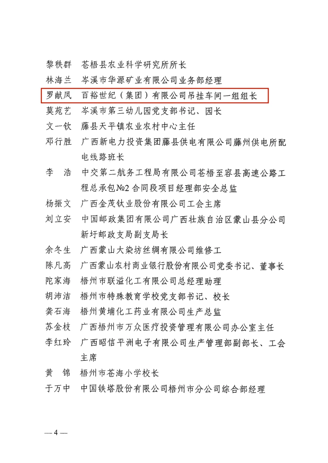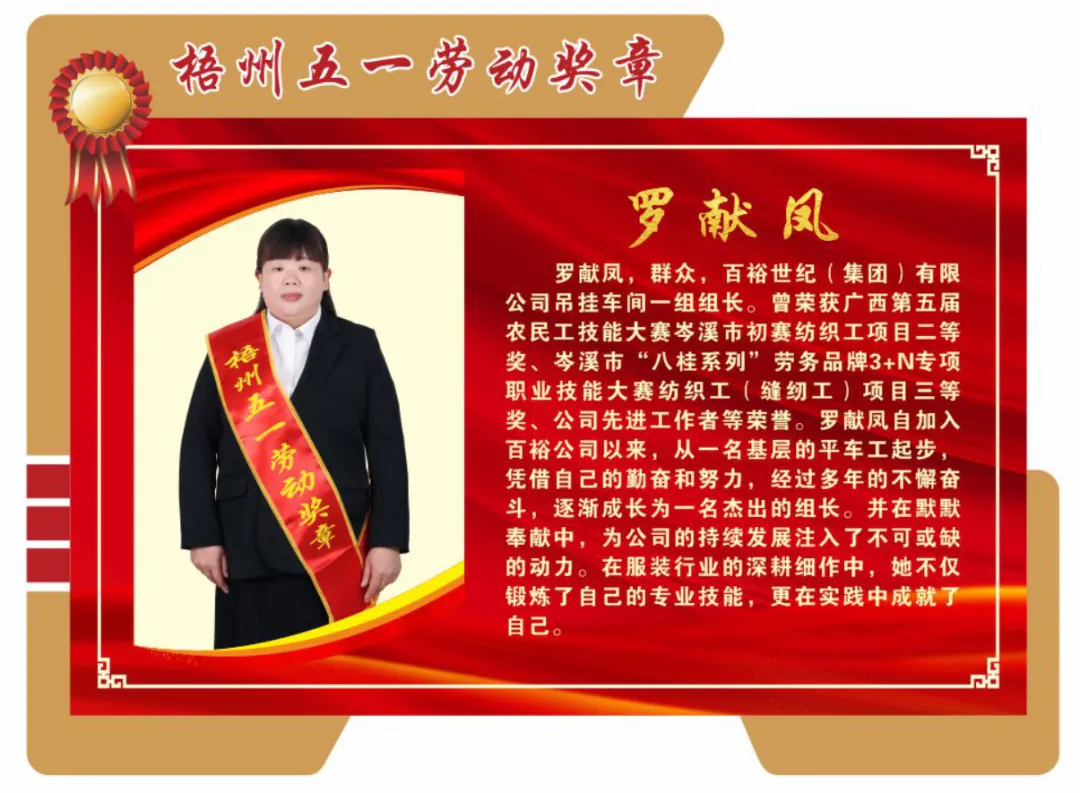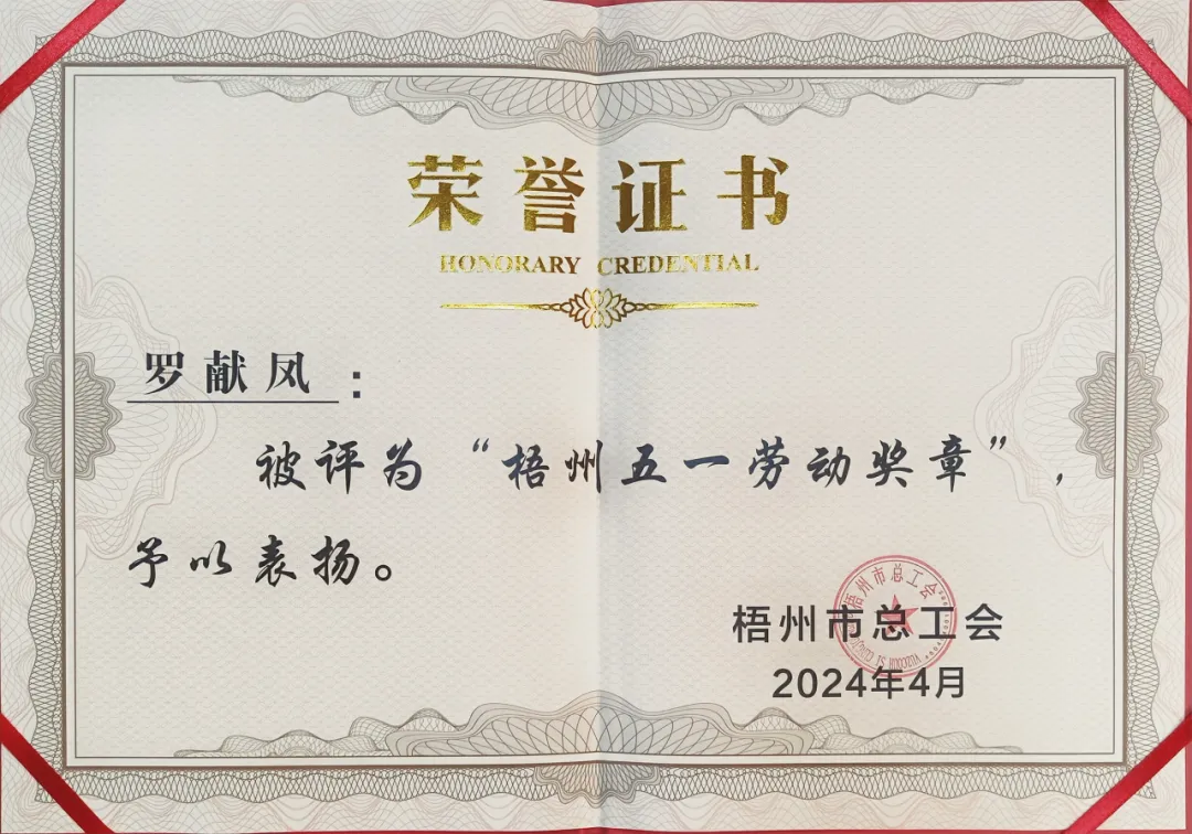 4月26日,梧州市總工會印發(fā)《梧州市總工會關(guān)于表揚2024年梧州五一勞動獎和梧州工人先鋒號的通報》,百裕世紀(集團)有限公司羅獻鳳同志榮獲2024年“梧州五一勞動獎?wù)隆薄?/span>
