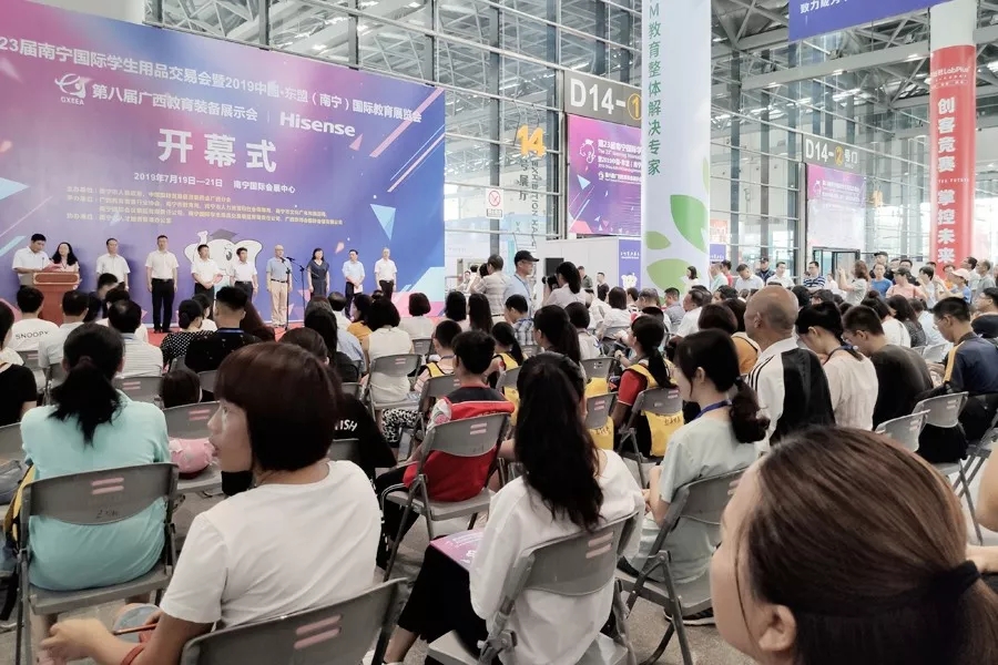 2019年7月19日,由南寧市人民政府、中國國際貿(mào)易促進委員會廣西分會主辦,由廣西教育裝備行業(yè)協(xié)會、南寧市教育局、南寧市人力資源和社會保障局、南寧市文化廣電和旅游局等承辦,由南寧市人才服務(wù)管理辦公室協(xié)辦的“第23屆南寧國際學生用品交易會暨2019中國·東盟(南寧)國際教育展覽會、第八屆廣西教育裝備展示會”,在南寧國際會展中心正式開幕。展示會從7月19日--21日共三天時間,來自全國各地教育裝備企業(yè)齊聚南寧,共襄盛會。