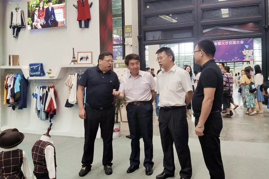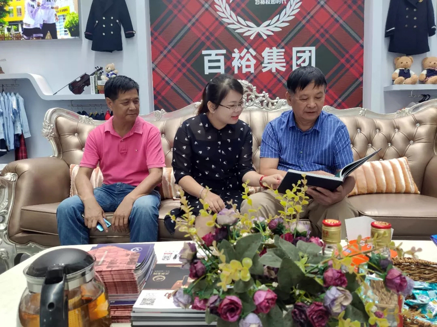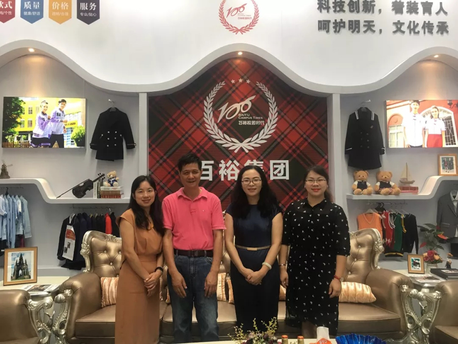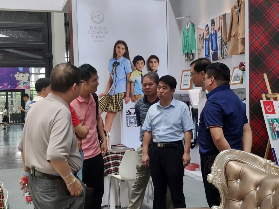 百裕集團工作人員向現(xiàn)場來賓講解百裕校園時代當季服裝的品牌理念和款式設(shè)計。時尚美觀又不乏個性的校園服飾引起了現(xiàn)場觀眾濃厚的興趣,大家紛紛駐足觀看、詢問交流。期間,工作得到了各級領(lǐng)導的現(xiàn)場指導。