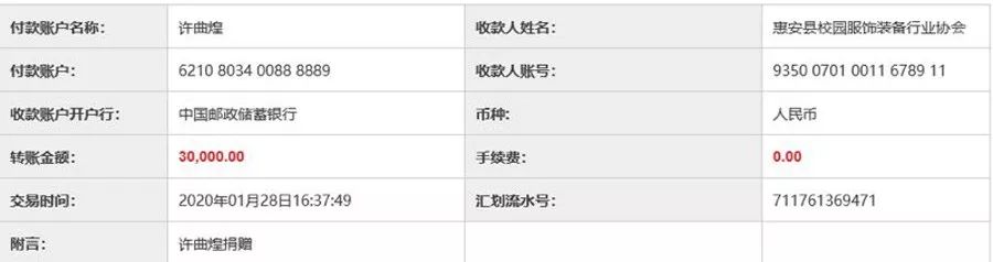 許曲煌董事長作為惠安校園服飾裝備行業(yè)協(xié)會會長,牽頭組織惠安校服協(xié)會共有132名會員企業(yè)家、群友,通過協(xié)會賬戶主渠道捐資520500元,通過其他渠道捐款的數(shù)額也將近20萬元。協(xié)會所募抗疫捐資,已轉40萬元到惠安縣慈善總會戶頭。其余的,根據(jù)有關部門意見,留待購買應急防控醫(yī)用物品,或隨時聽候縣防控指揮部調用。目前,后續(xù)的捐款還在進行中。